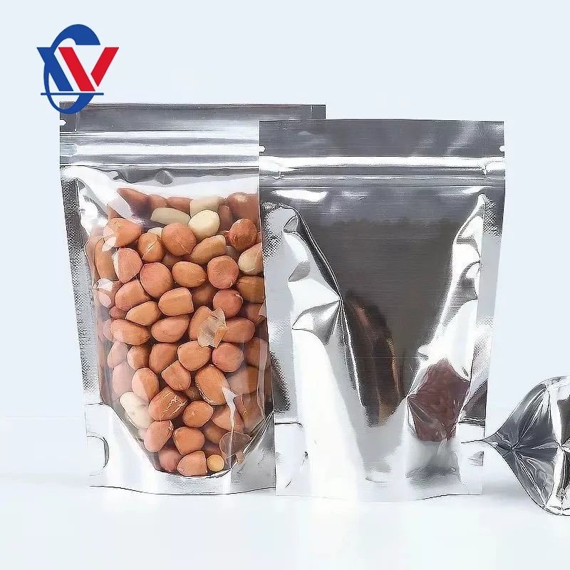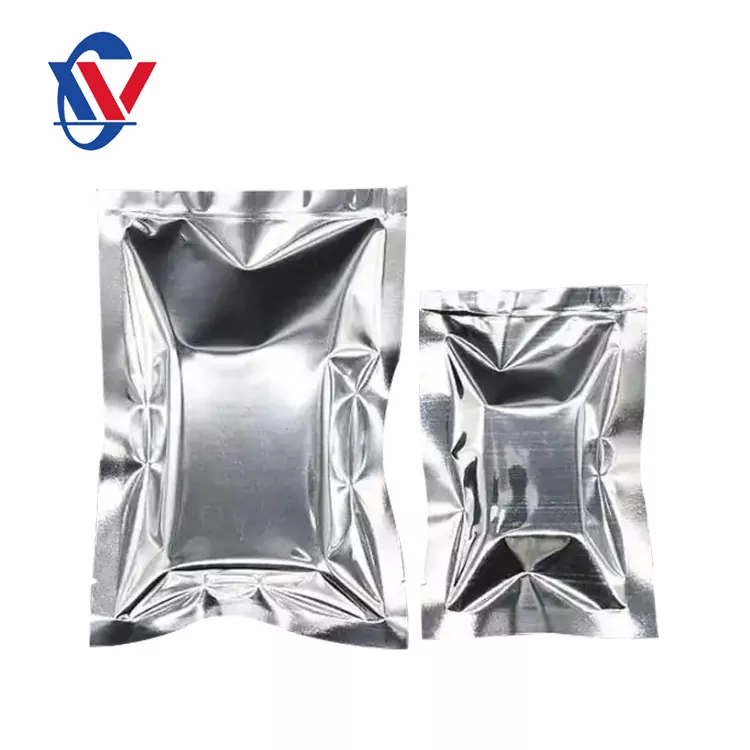 أحد جوانب أكياس التغليف المصنوعة من الألمنيوم هو فيلم شفاف ، والجانب الآخر هو فيلم غير شفاف من رقائق الألومنيوم أو الألمنيوم. يتضمن تكوين المواد عادة PET+PE (فيلم فراغ) أو PE+PA (فيلم فراغ النايلون) كجانب شفاف ، في حين يتكون الجانب الآخر من PET+Al+PE (رقائق الألومنيوم) أو PET+AL+CPP (احباط الألمنيوم المقاوم للدرجات ذات درجة حرارة عالية) أو فيلم PET+الألمنيوم.