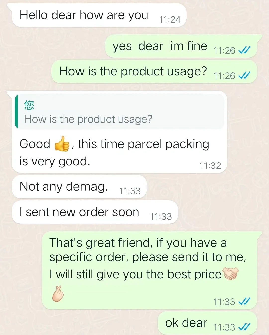 في الآونة الأخيرة ، تحدث العديد من العملاء على المدى الطويل من العراق وكينيا عن عبوات Wancai المخصصة المخصصة والتسليم الفوري. وقد عزز هذا ثقة Wancai في إنتاج منتجات عالية الجودة وبالتالي خدمة أفضل لعملائها.